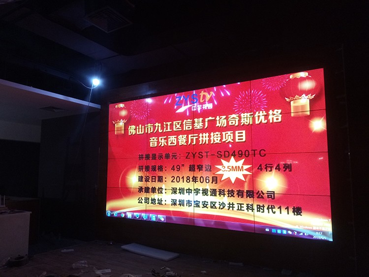 九江區(qū)信基廣場(chǎng)奇斯優(yōu)格音樂(lè)西餐廳49寸拼接屏項(xiàng)目
