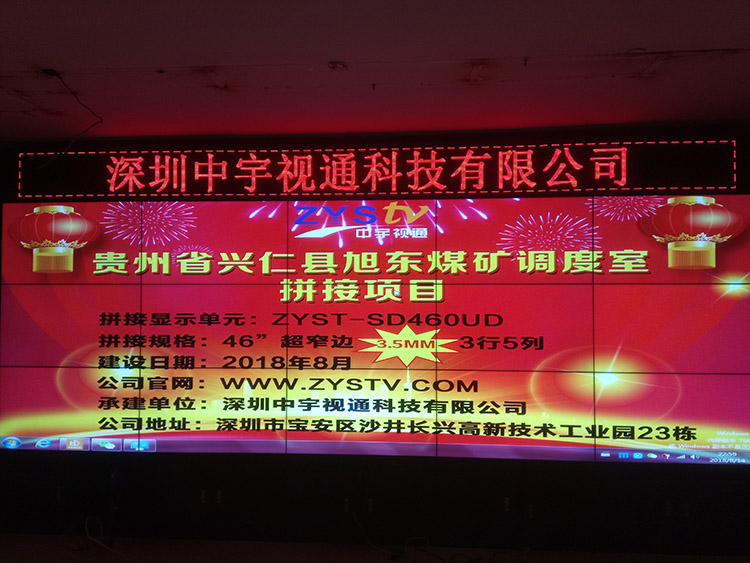 貴州省興仁縣旭東煤礦調(diào)度室46寸拼接屏項目采用中宇視通科技大屏液晶拼接方案,項目安裝調(diào)試完成并順利驗收。