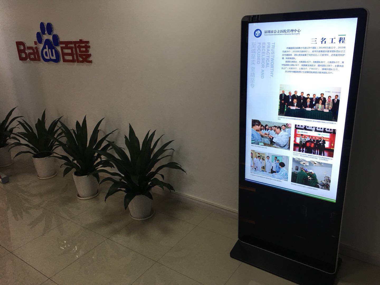 恭喜公司與百度達成共識,簽署框架協(xié)議。中宇視通廣告機成功入駐百度廣州分公司,百度東莞分公司,百度華南區(qū)呼叫中心