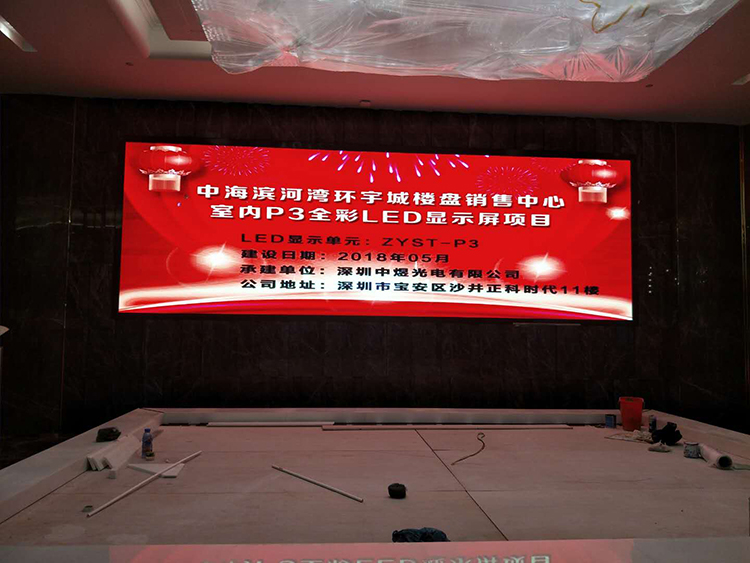 中海濱河灣環(huán)宇城樓盤銷售中心選擇中宇視通P3全彩LED顯示屏,項(xiàng)目順利完成驗(yàn)收。