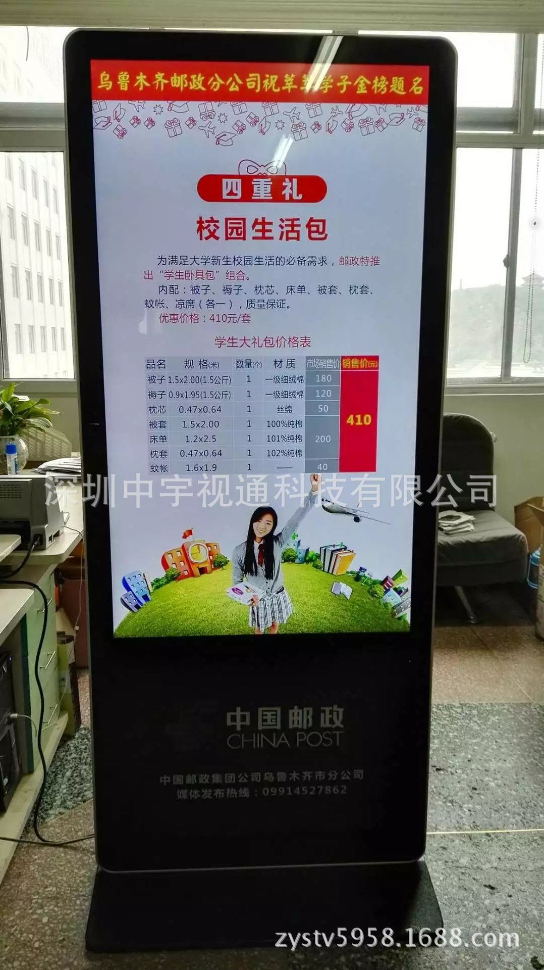 中宇視通55寸立式網(wǎng)絡(luò)廣告機(jī)入住新疆烏魯木齊郵政局
