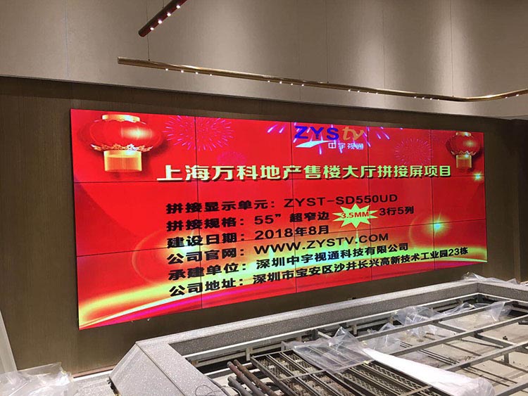 上海萬科地產(chǎn)售樓大廳55寸液晶拼接屏項(xiàng)目選擇中宇視通科技的拼接方案,項(xiàng)目安裝調(diào)試完成并且順利驗(yàn)收,中宇視通科技全體職工從深圳發(fā)來賀電!