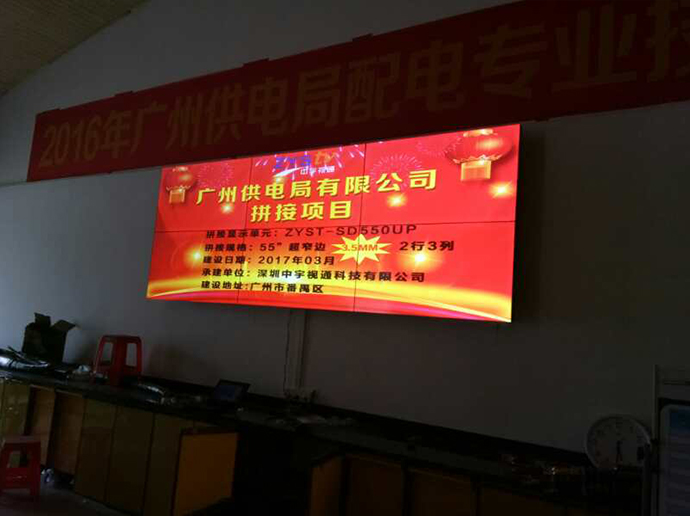 拼接項目:廣州市供電局拼接單元:ZYST-SD550UP拼接拼縫:3.5mm拼接規(guī)格:2*3拼接尺寸:55寸拼接屏安裝方式:壁掛承建地址:廣州市番禺區(qū)供電局承建日期:2017年3月承建單位:深圳中宇視通科技有限公司