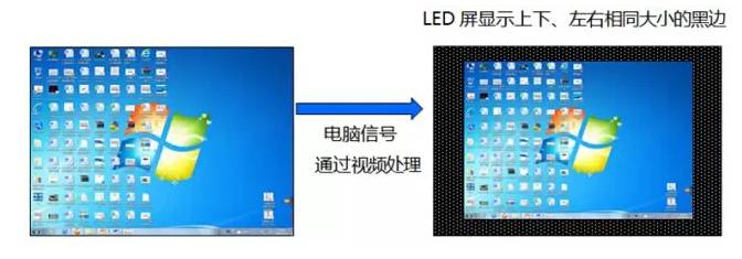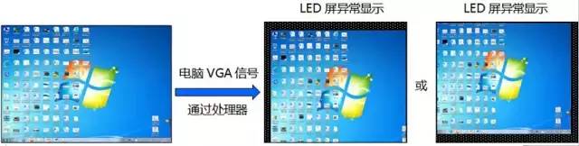 1.選擇電腦輸入信號(hào)時(shí)(VGA,DVI或者HDMI等),處理器設(shè)置正確,但是電腦桌面圖像居中顯示在LED屏上,
