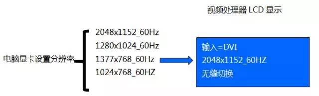 2.電腦顯卡的輸出分辨率設(shè)置不同的值,處理器LCD顯示的輸入分辨率都是一個(gè)固定值。如:一直顯示2048x1152_60Hz
