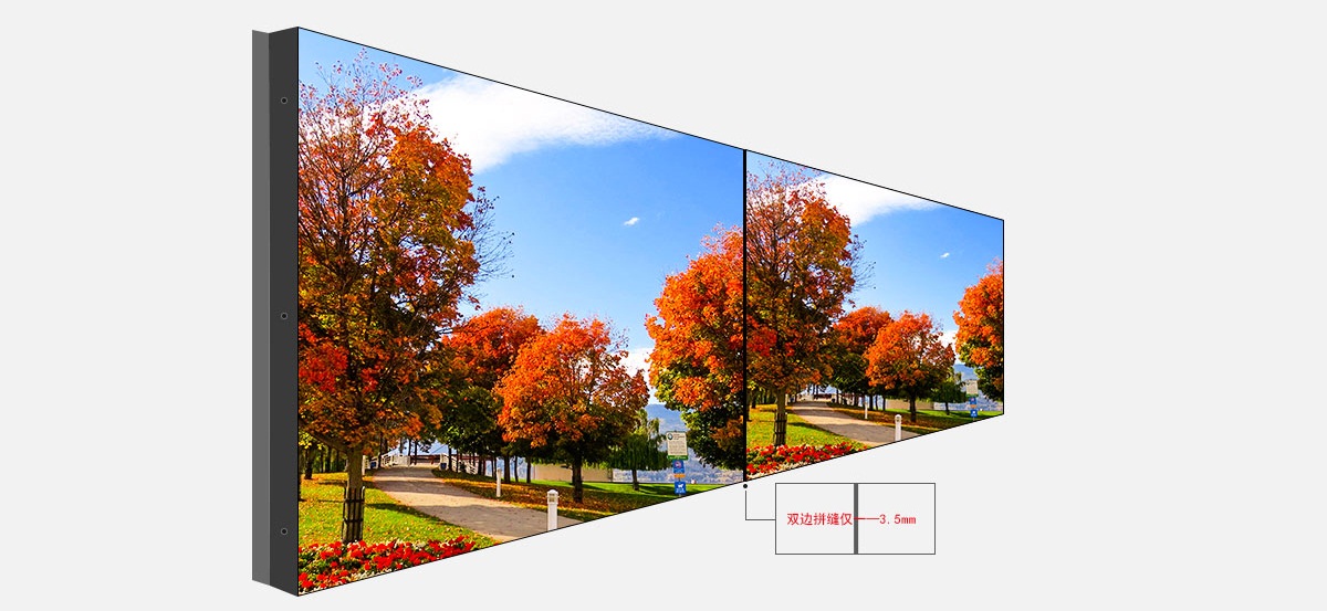 右/下邊的邊框?qū)挾葹?.3mm,多屏拼接時(shí)邊框間隔僅3.5mm