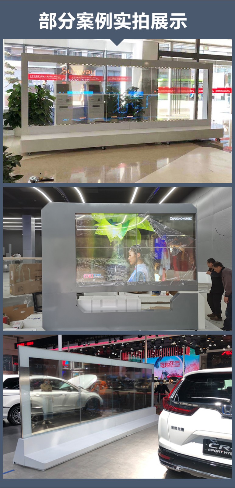 OLED透明顯示屏采用發(fā)光透明的有機OLED顯示屏,當關閉屏幕后,它呈現(xiàn)出透明玻璃的視覺質感,與環(huán)境和諧融洽,極具未來感的設計,可以給使用者驚艷的視覺感受。OLED透明顯示屏可根據客戶環(huán)境不同,定制不同造型的產品從而滿足客戶不同的需求,無論是智慧化辦公還是高級商場、銀行等建筑物,都可以通過定制化為企業(yè)及產品提升自身形象。