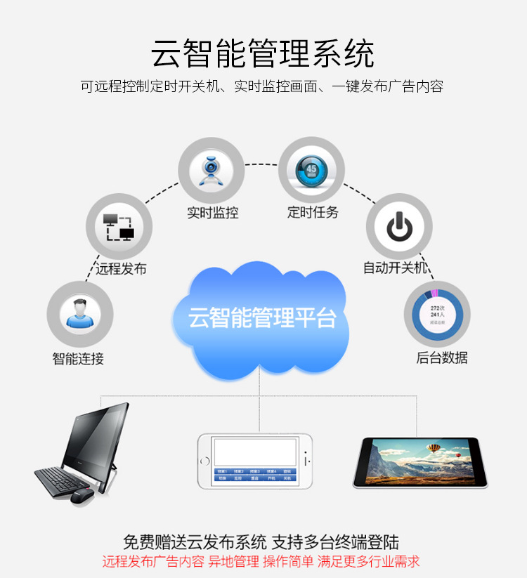 工業(yè)級電源系統(tǒng),自帶恒溫散熱系統(tǒng),可滿足24*7連續(xù)不間斷開機播放。